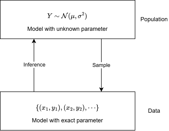 - 如果我们有具体的数据 $ \{(x_1, y_1), (x_2, y_2), \cdots\} $ ,我们可以使用这些数据来推断概率分布所描述的“规则”,得到一个对概率分布的参数估计