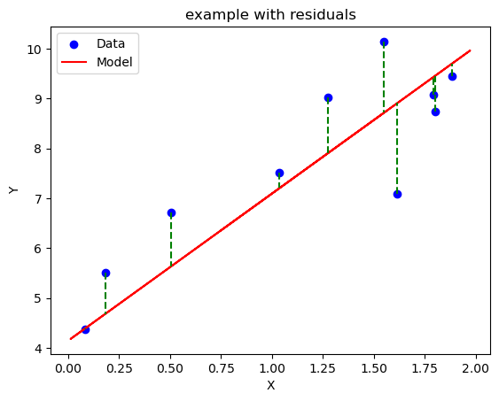 如下为一组噪声和一个线性回归的拟合线。点和模型拟合线之间的距离为 $ \epsilon $ ,我们通常假设其服从一个均值为0,方差未知的正态分布,且误差之间相互独立。 $ \epsilon $ 的拆分和处理将于 模型的误差 一节介绍